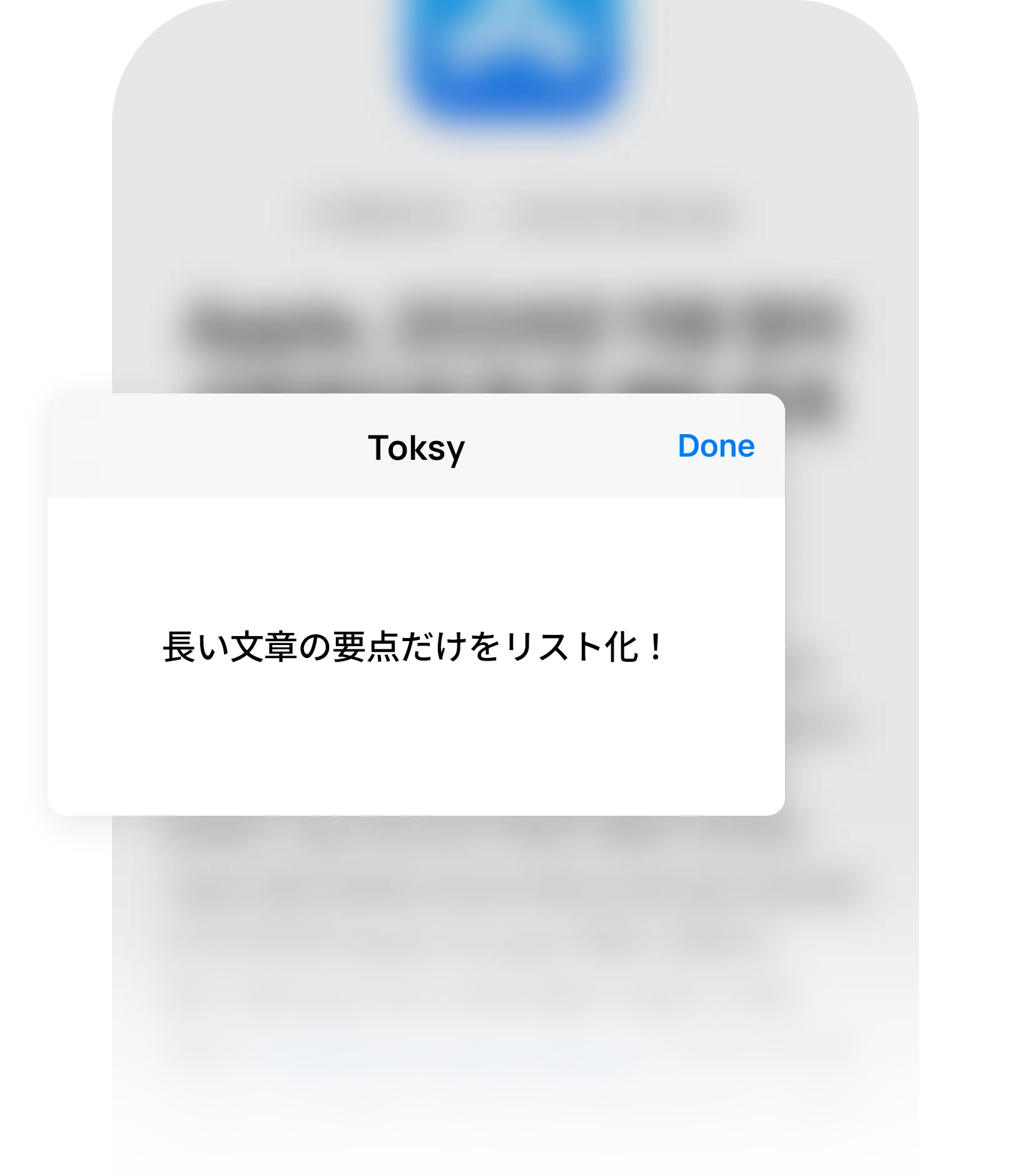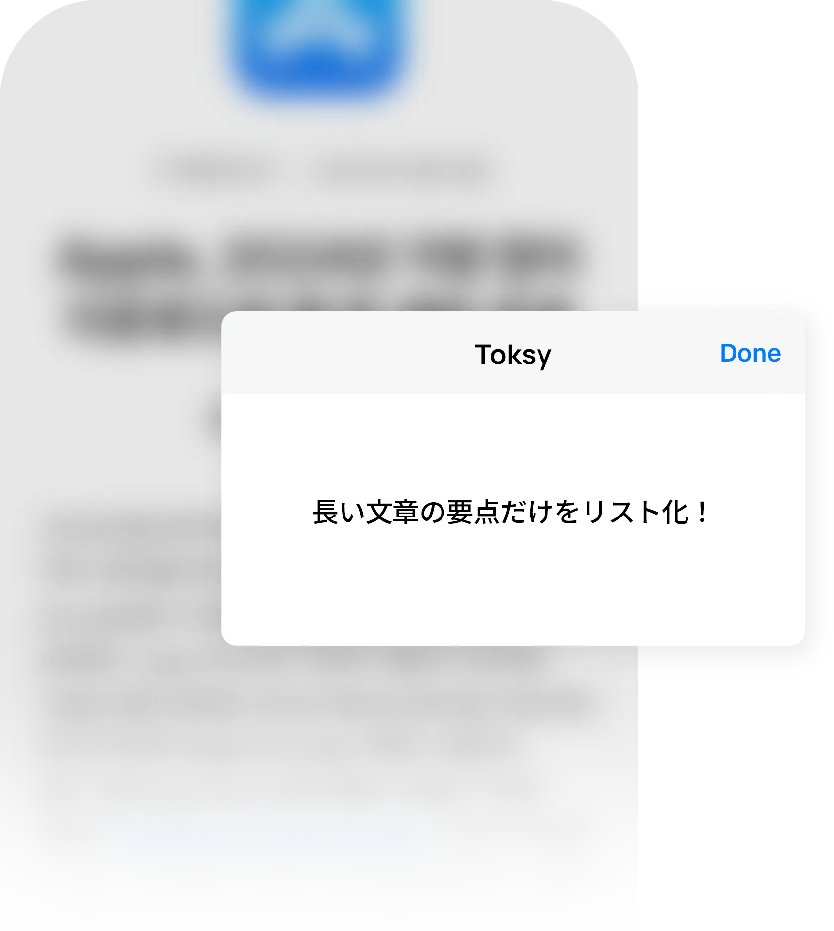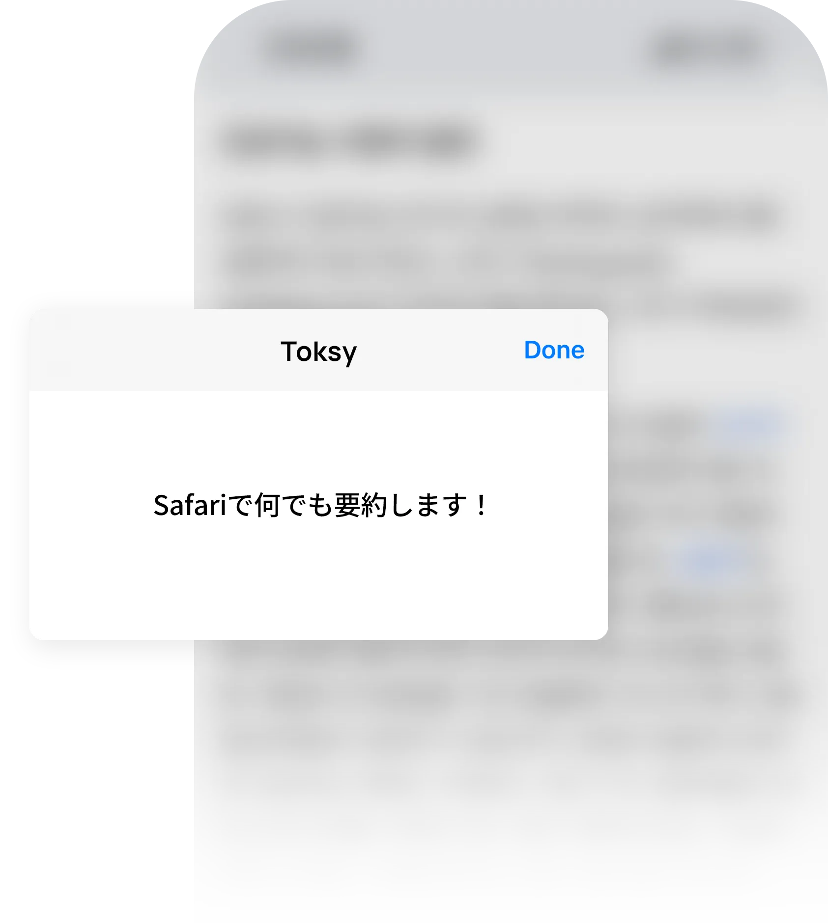 Toksyは、タッチ一つで欲しい文章を要約します。